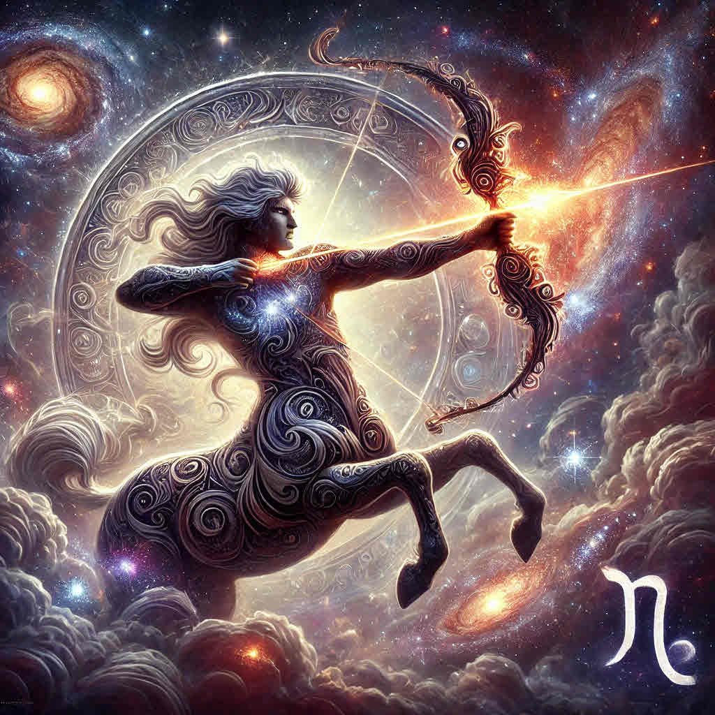 The Moon, cloaked in the mysterious robes of Scorpio, invites the archer to dive beneath the surface and discover treasures hidden within the soul. This lunar phase, waning yet powerful, asks for release—let go of what no longer serves, and allow your spirit to be reborn in the sacred waters of transformation. During this passage, emotions are intensified, and intuition is heightened, offering you the gift of profound self-understanding. Trust the wisdom that rises from your depths, and know that every ending is but a prelude to a radiant new beginning. The universe urges you to honor your feelings, for they are the compass guiding your next adventure.